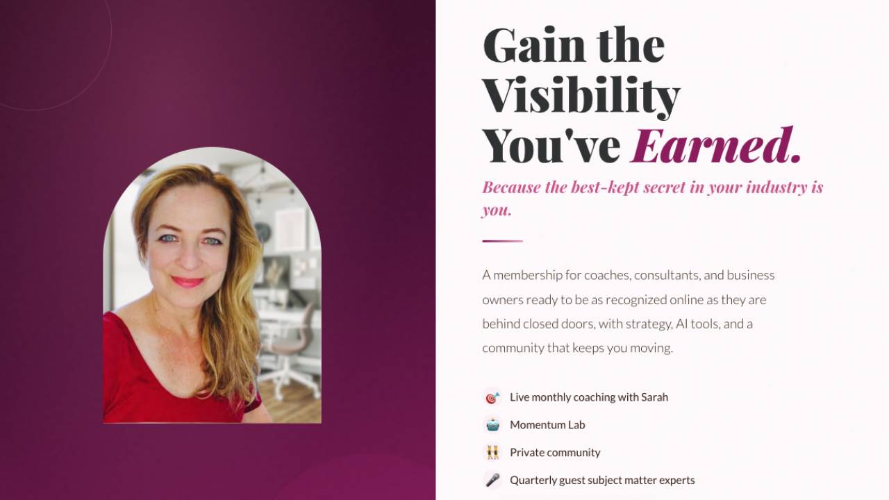 For experts to gain visibility, automate systems and leverage AI tools. Meet 2 x per month for coaching and to implement tools for Visibility. Learn how to craft your own videos, blog and other visibility tools for your business.